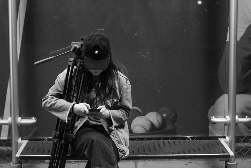 Hanyu Jiang stands alone on the footbridge between the BU Beach and the Esplanade over Storrow Drive with street light casts onto her on June 7th