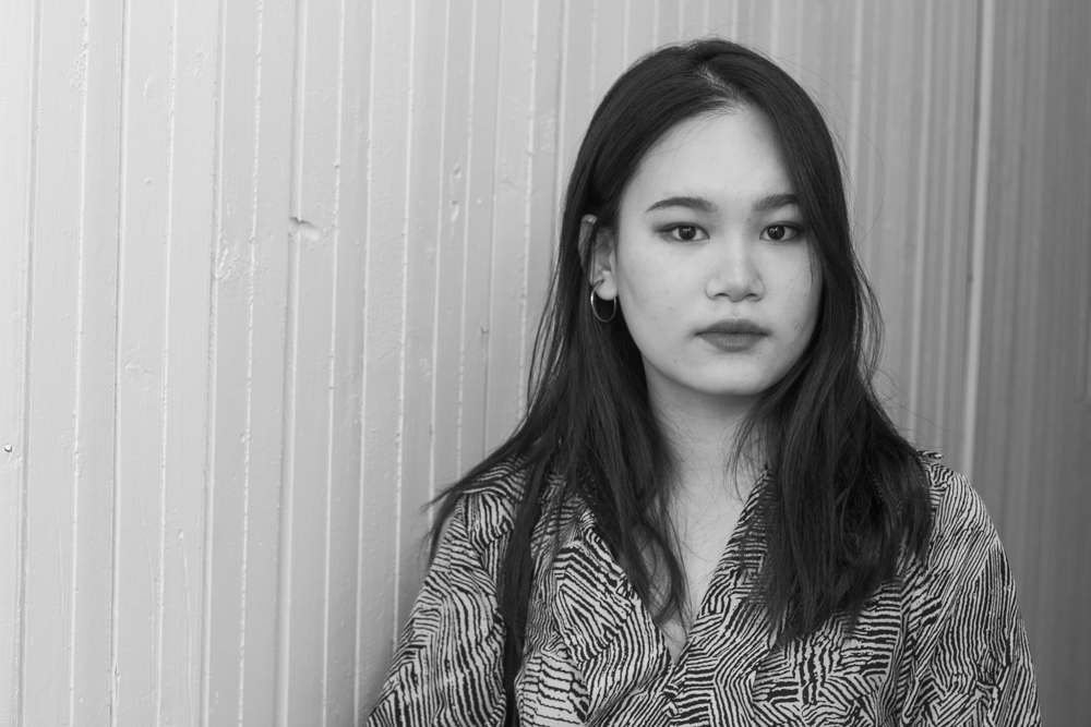 Hanyu Jiang faces a direct flash in the hallway of a building at 249 A street on June 5